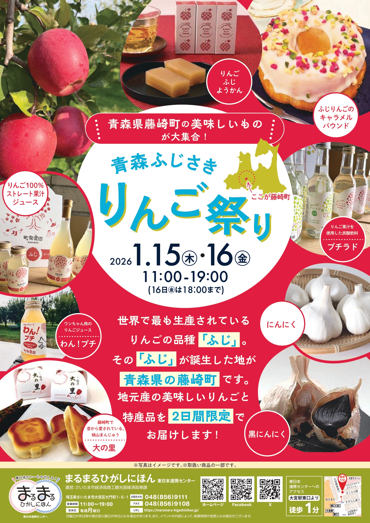 1月15日(木)、16日(金)の2日間、まるまるひがしにほん東日本連携センター(埼玉県さいたま市)にて藤崎町物産イベント「青森ふじさき りんご祭り」を開催します!