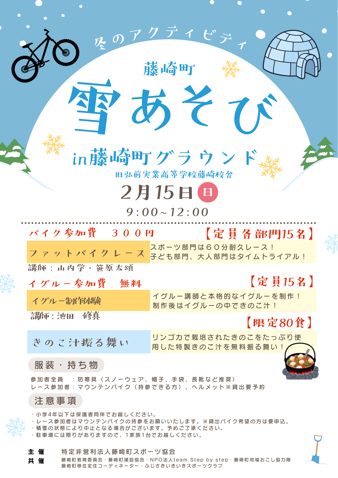 【2/15(日)開催】冬のアクティビティ 藤崎町雪あそびin藤崎町グラウンド