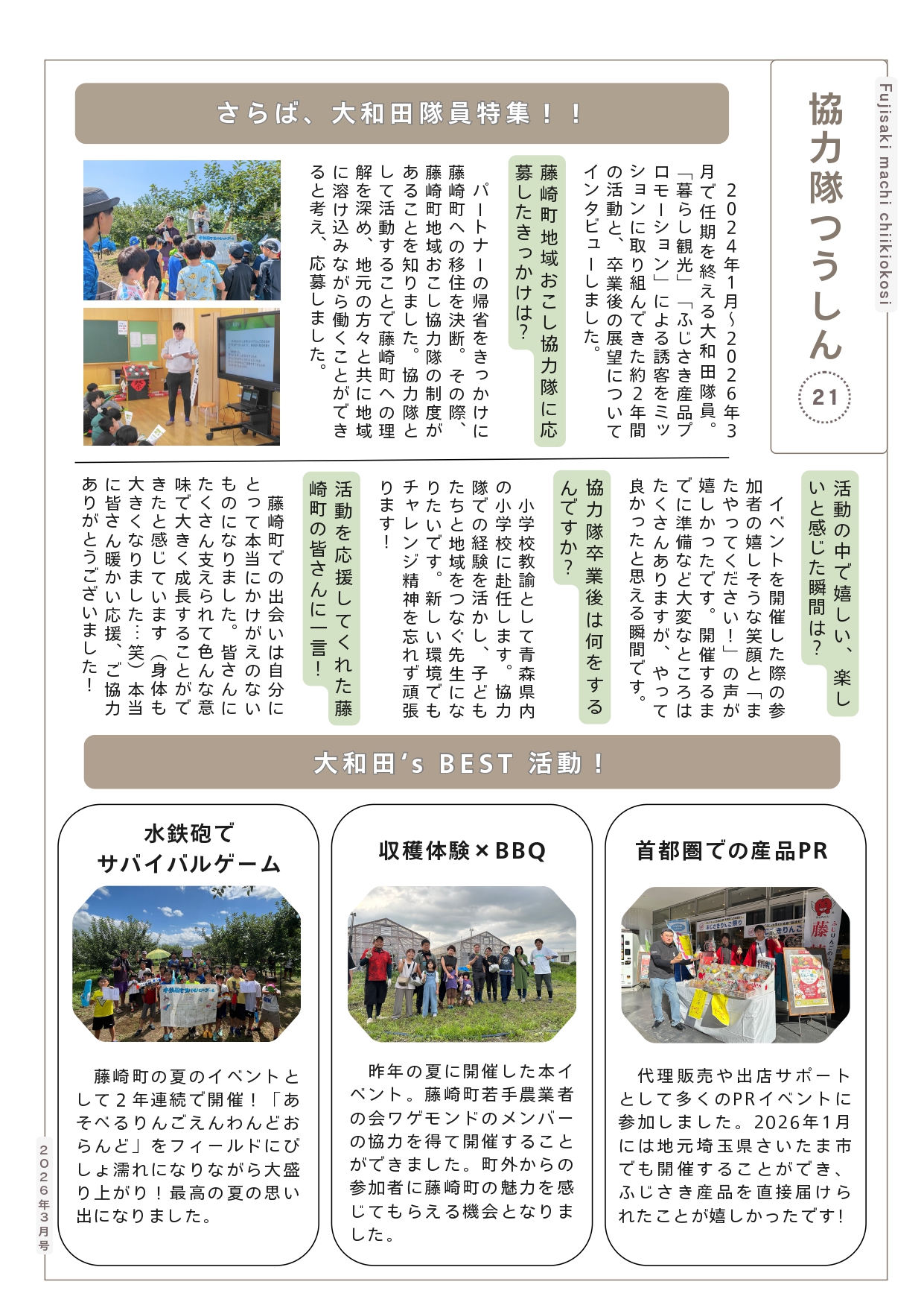 藤崎町地域おこし協力隊による情報紙「協力隊つうしんvol.21」を発行しました!